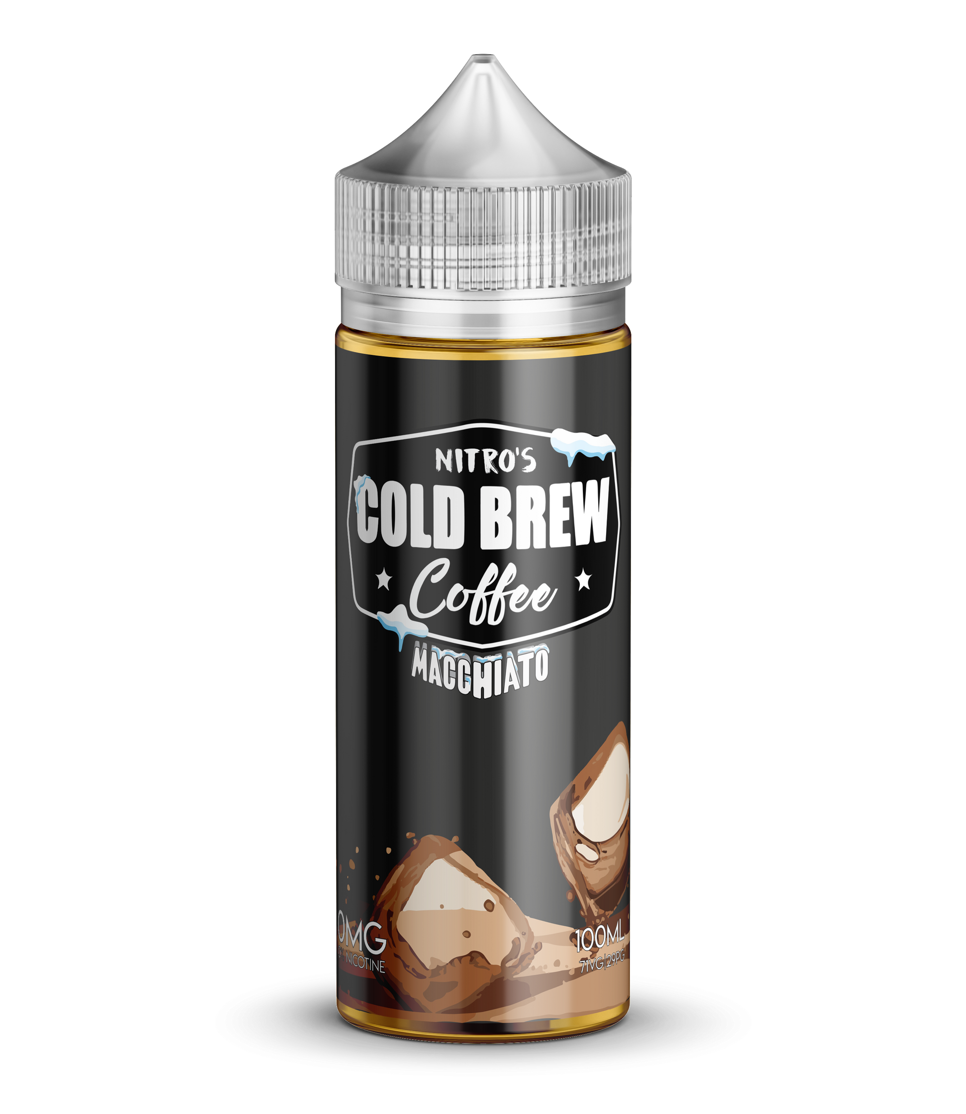 Usually just cold coffee, filtered water, and nitrogen. The vape version blends this into flavour form with a smooth twist.