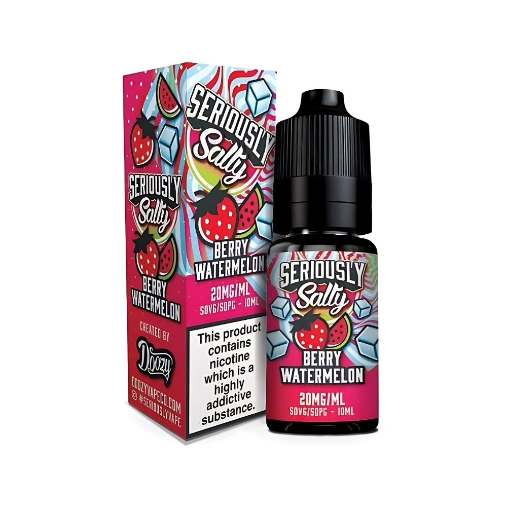 It’s a 10ml bottle of Seriously Salty By Doozy Vape 10ml, sealed up with a safety cap and a slim nozzle. You’ll find the flavour name clear on the front, and the strength on the side. No frills, just exactly what you need.
